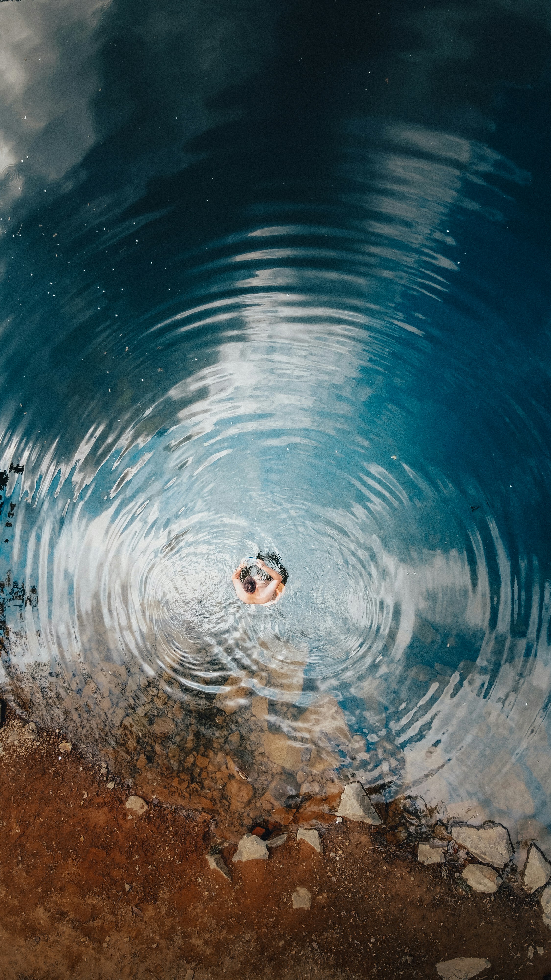 I walk out into the sea, up to shoulder height, and immerse myself with feet firmly on the ground, with the shore always in doggy paddling distance to the eye.